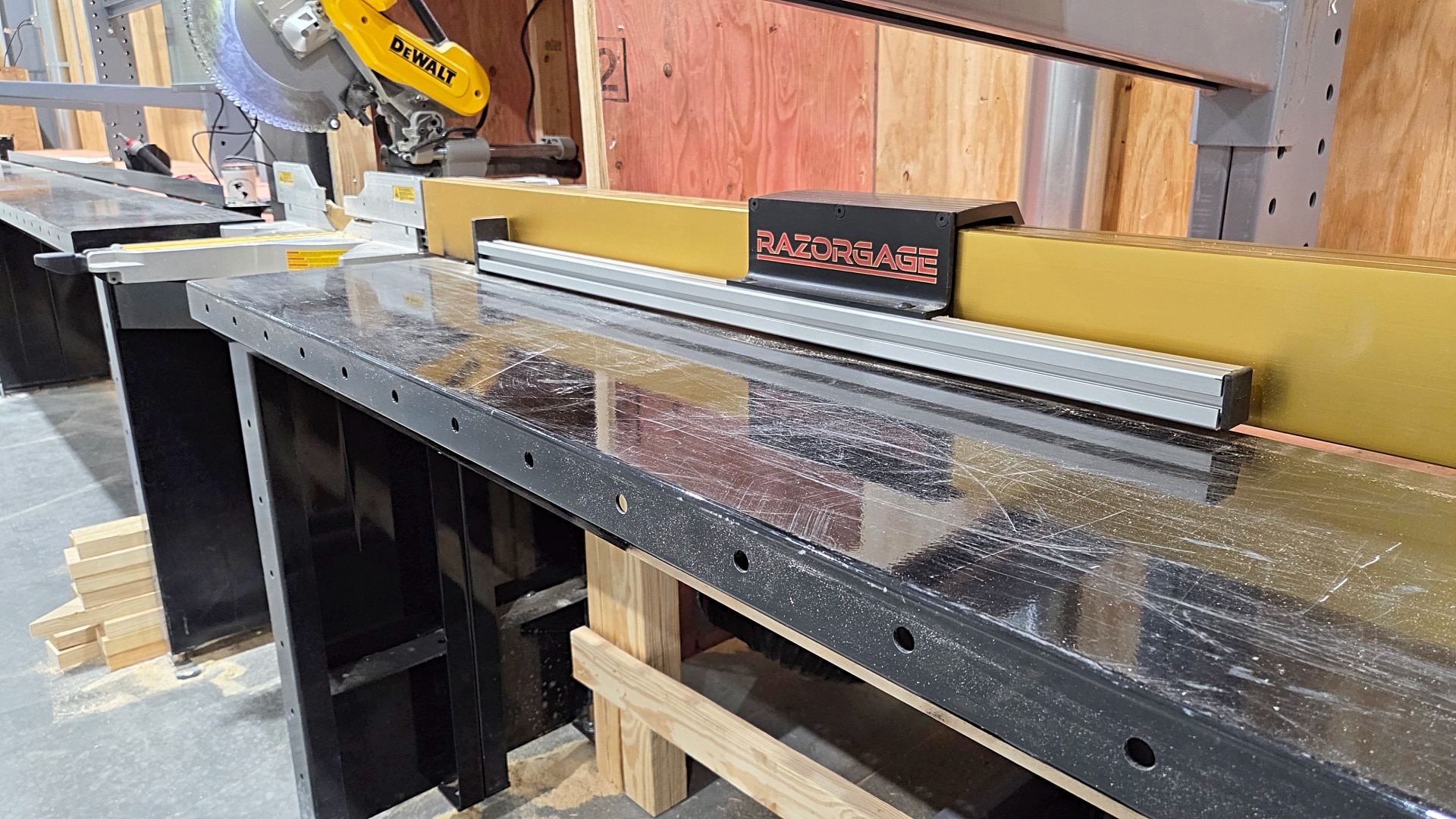 60ft Long Industrial Miter Saw Bench With Integrated RazorGage Digital Stop